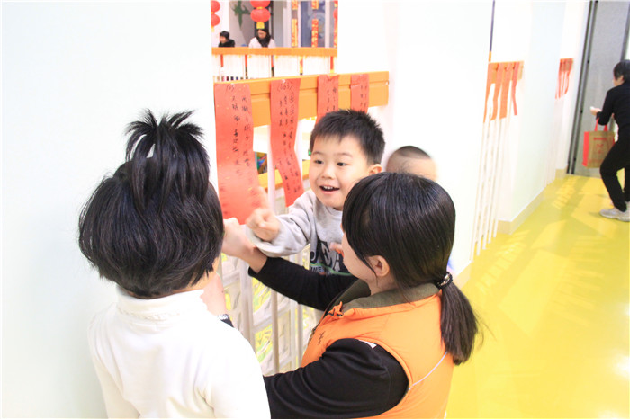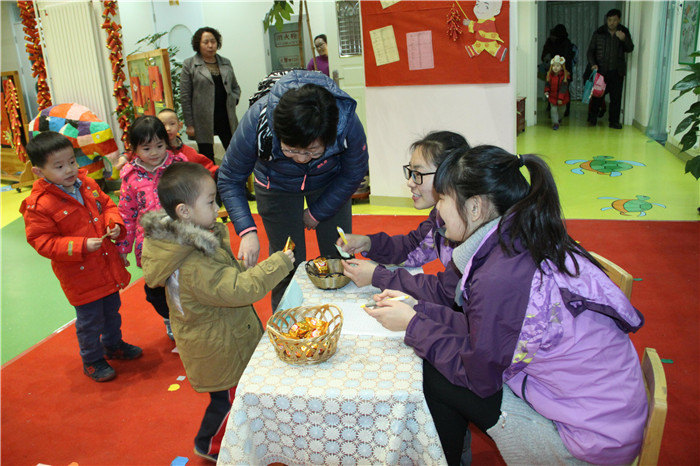 “猜灯谜”是幼儿园新年的传统项目,从幼儿了解“猜灯谜”这一传统习俗到亲子制作灯笼、收集灯谜、装饰环境,最后猜灯谜兑奖品,活动的每个环节都蕴含着对幼儿的传统年文化教育。灯谜全是幼儿在家长的协助下自己挑选的,难易适合,也增加了幼儿在猜灯谜活动中的成就感。