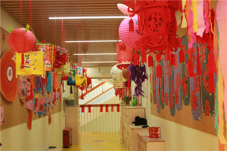 联欢即将开始,幼儿园室内外一片喜庆、祥和的氛围!