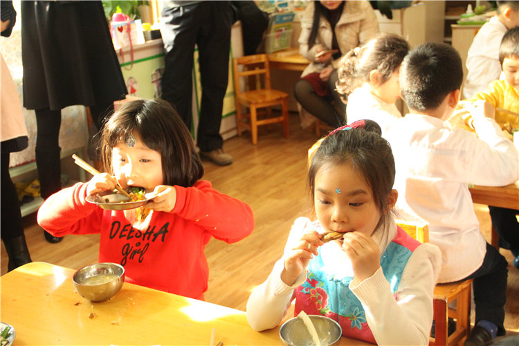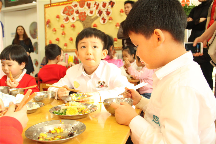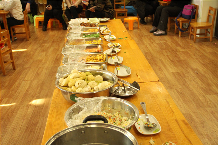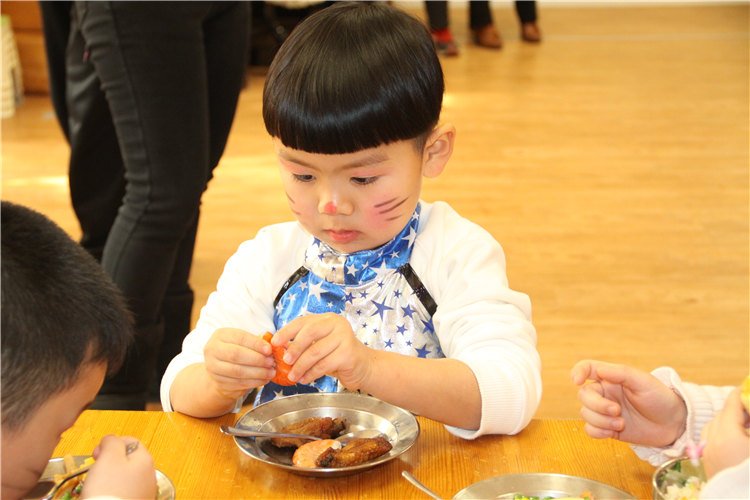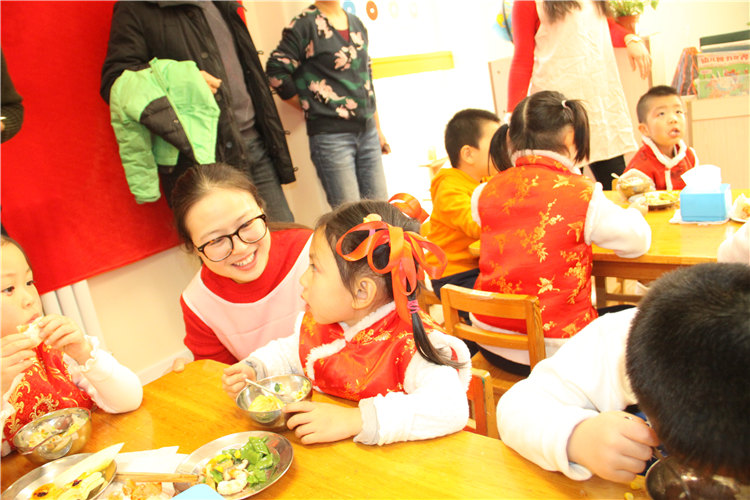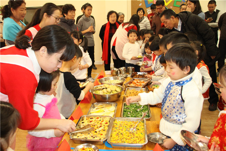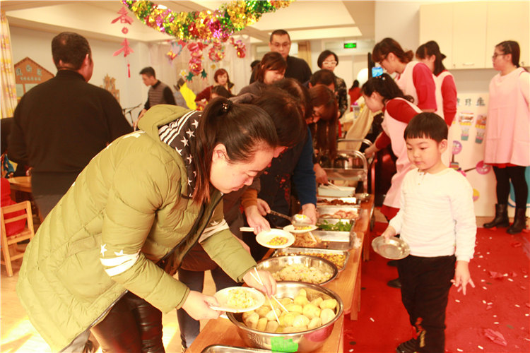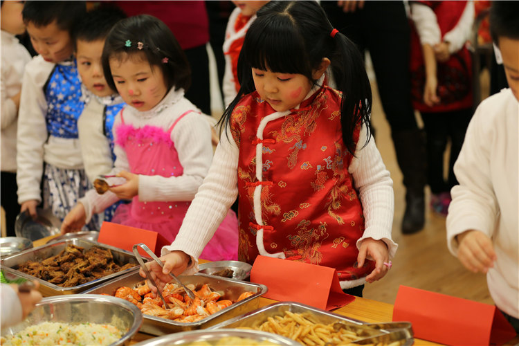 当天中午,厨房的叔叔阿姨为孩子们准备了自助大餐,有斯里兰卡的大虾、鸡翅、糕点、蔬菜、水果……看着孩子们大口大口进餐的样子,看着孩子们一边品尝一边交谈的喜悦神情,浓浓的年味和家的温馨充满了整个幼儿园。