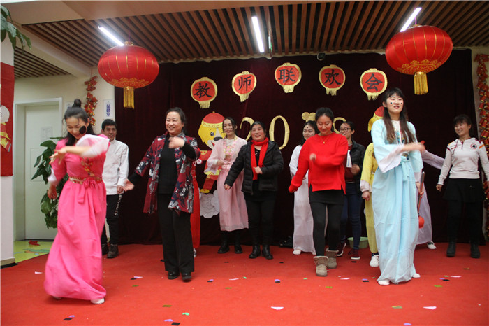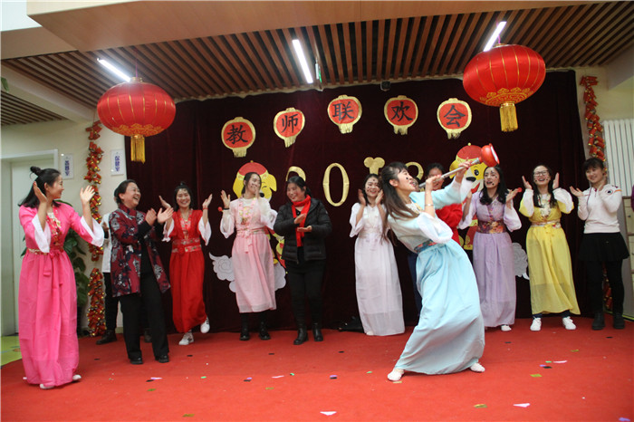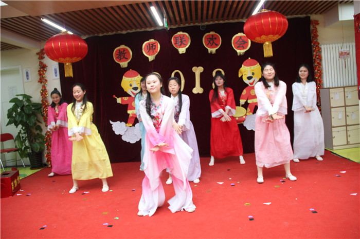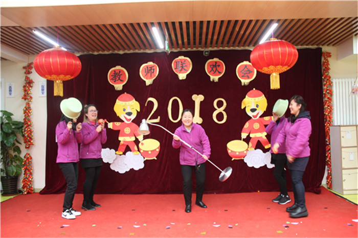 2017年12月29日奥林分园举行了教职工新年联欢活动,全体教职工齐聚大厅,载歌载舞,共同庆祝新年的到来。本次联欢会的主题是“辞旧迎新才艺秀,全园欢乐狗年旺”。今年联欢会上奥林分园不仅所有教职工都上台表演了节目,今年的节目也演出了新创意,高水平,有优美的舞蹈,欢乐的歌唱,幽默的小品、还有穿越式的舞蹈串烧、颇具创意的广告、主持人的幽默串场,更有火爆全场的游艺项目。才艺秀与娱乐相结合,全园上下其乐融融,新年喜庆、热闹的氛围嗨翻全场。