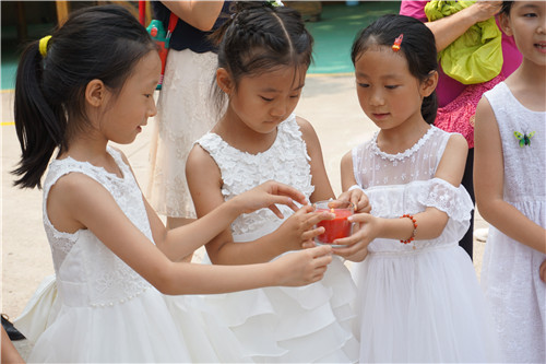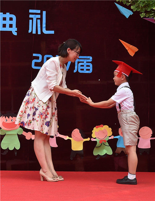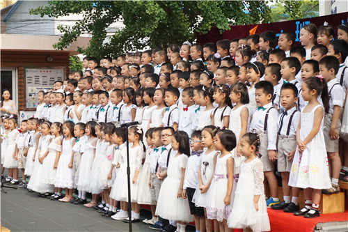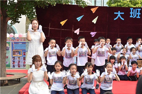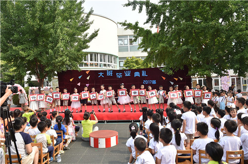2017年6月30日,牡丹分园举行大班毕业典礼,全体毕业生及其家长盛装出席。典礼上,家长代表致辞,分享孩子成长的瞬间;园长讲话,感谢孩子带给幼儿园的欢乐;幼儿园弟弟妹妹发言,祝愿哥哥姐姐取得好成绩……时时处处流露出家长与幼儿园、孩子与老师之间的情深意切。接着,毕业生们用歌声唱出成长的骄傲,用舞蹈展示出童年的美好,台下的老师和家长们心起涟漪,感动、感慨、欣喜、欣慰……。最后,鲜花送给老师、蜡烛传递祝福、气球放飞心愿,愿孩子们从这里起航,飞向更广阔的天地……