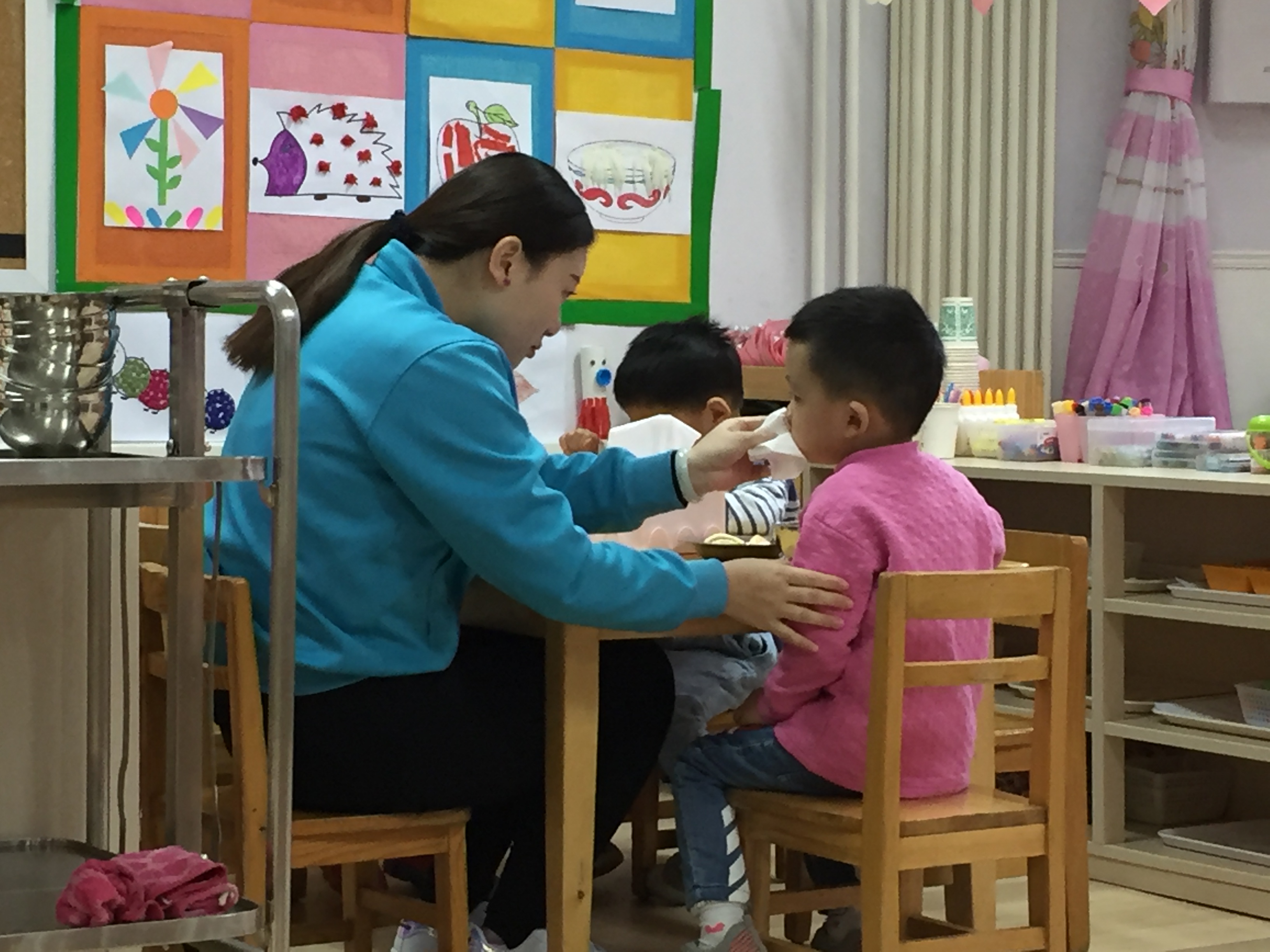 早餐时,黄老师看到孩子流鼻涕了……
