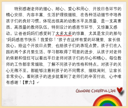 家长的肯定让我们倍感幸福