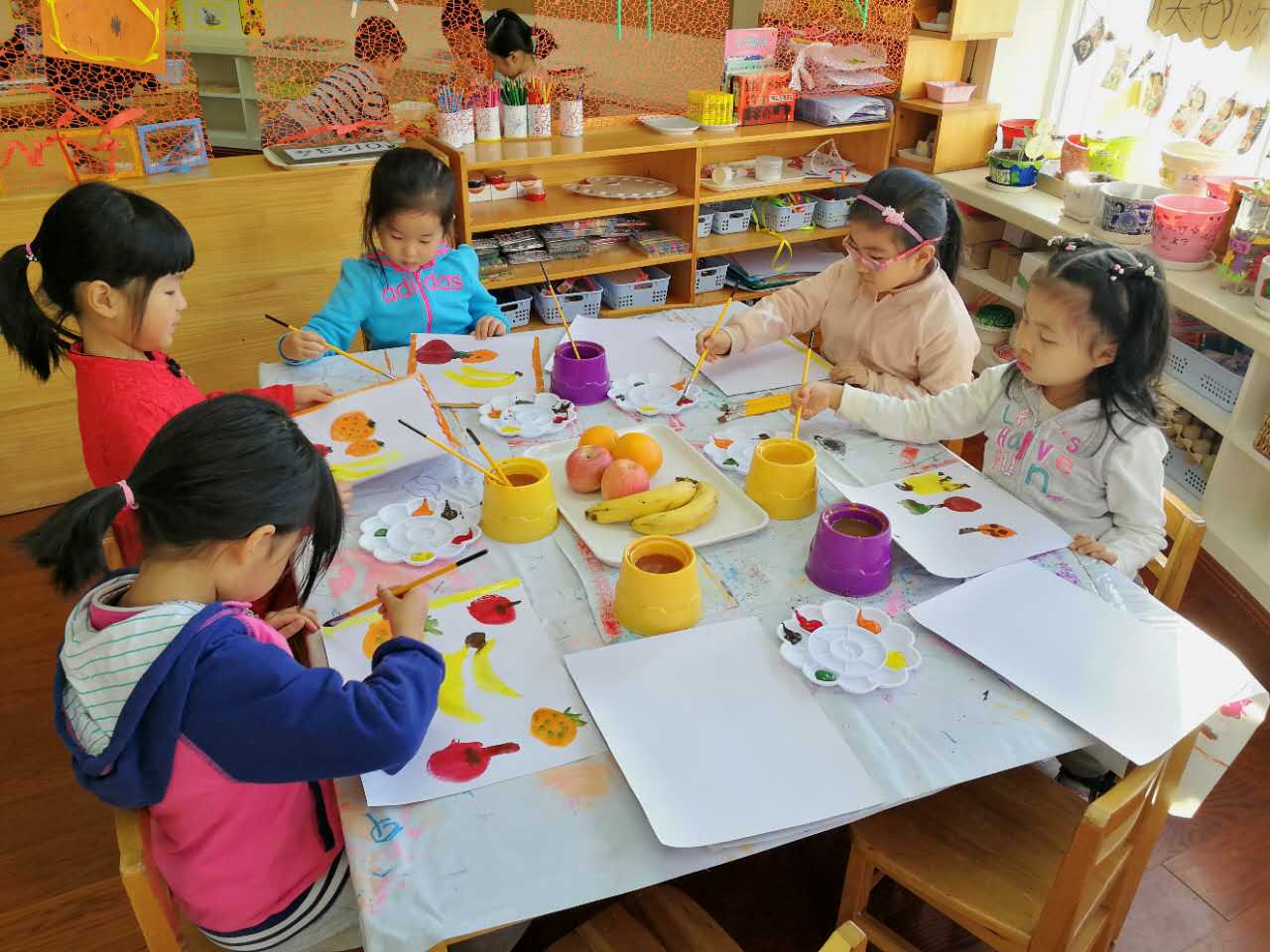 孩子们在进行水果写生活动