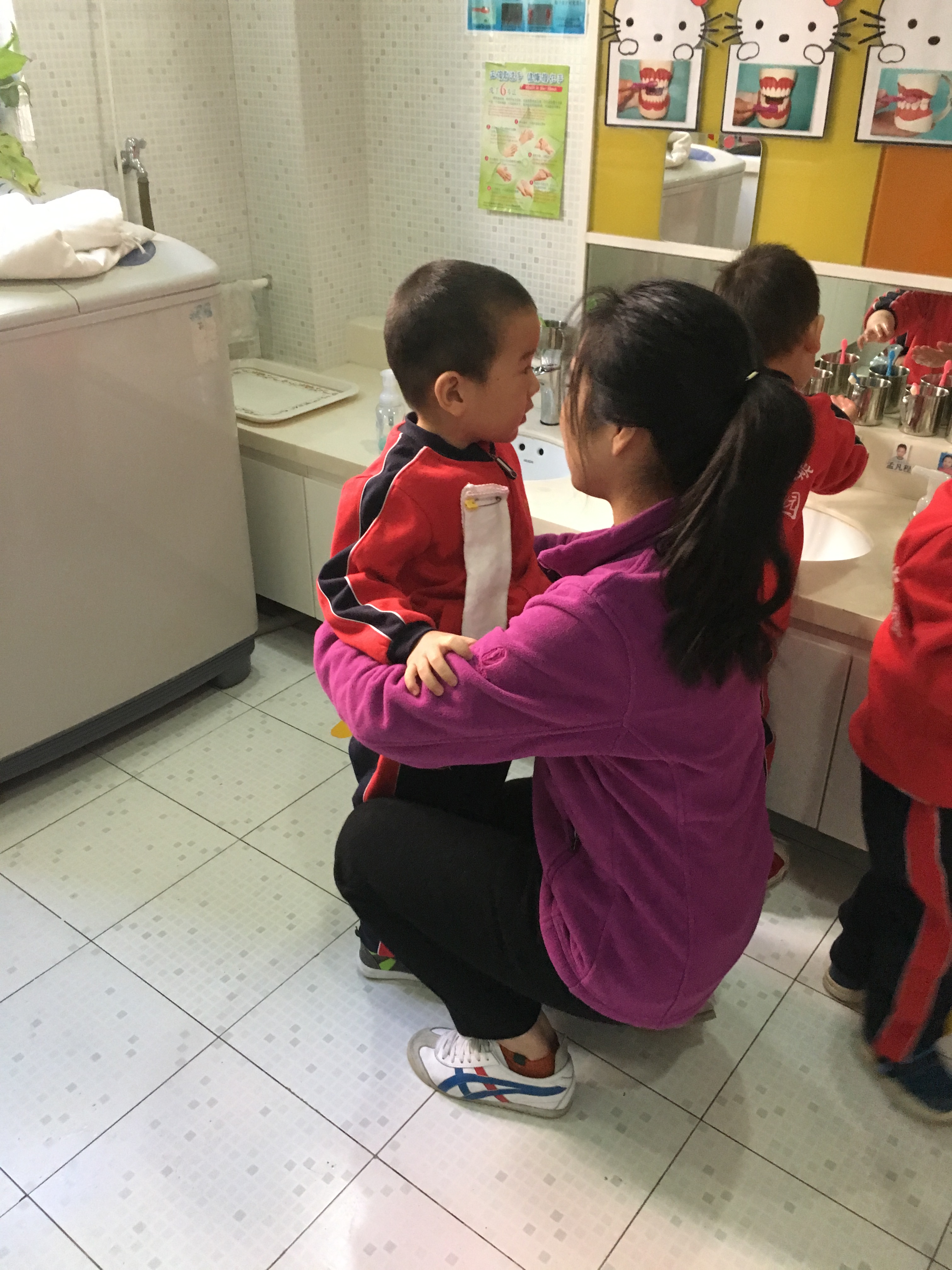 武老师为孩子提一提裤子,不要露出小肚皮