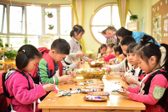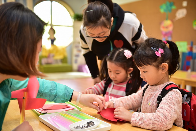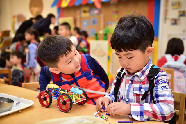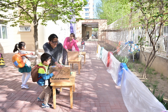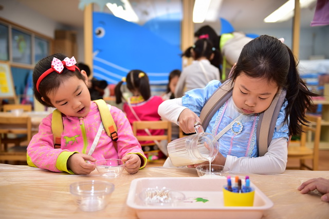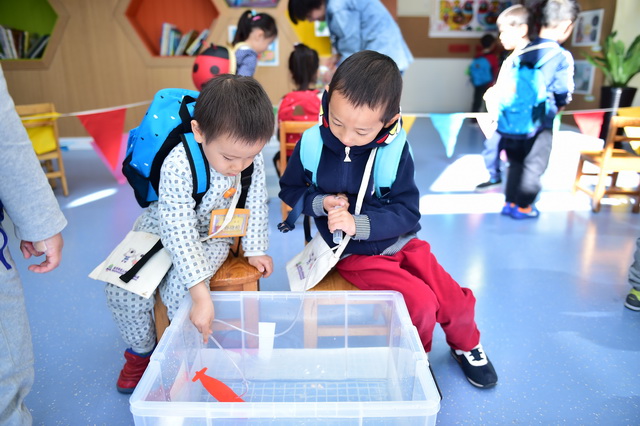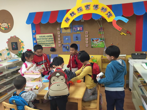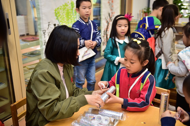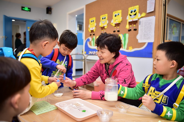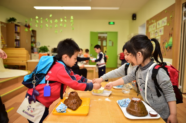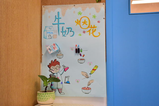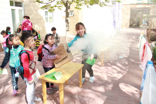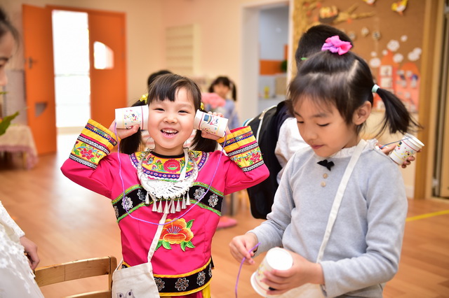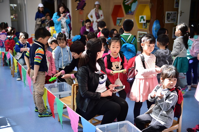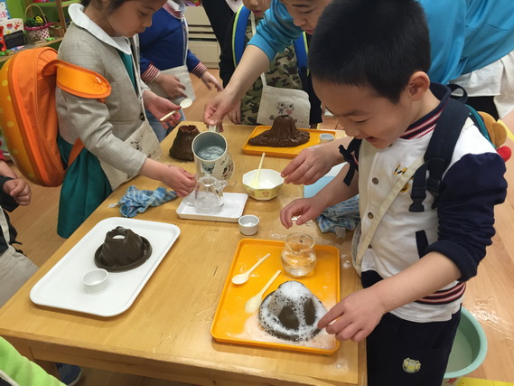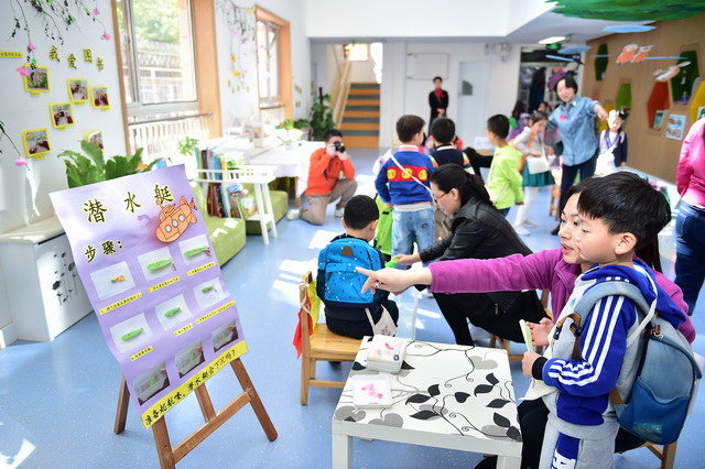 2017年4月12日,望京分园开展了以“科学探索”为主题的小鬼当家活动。在学前领域我们常把孩子比作天生的科学家,不是因为他们有多少渊博的科学知识,而是他们对事物与生俱来的好奇心、探究欲可以和专业的科学家媲美。一个小风车、一个不倒翁、一只万花筒、一架纸电话……这些常见的童年小玩具能让孩子们乐此不疲地吹啊吹、按啊按、看啊看、听啊听,摆弄一上午。更何况还是自己亲手制作的!还有牛奶、小苏打、白醋……这些生活中常见的材料,放在一起竟会发生神奇的变化!
