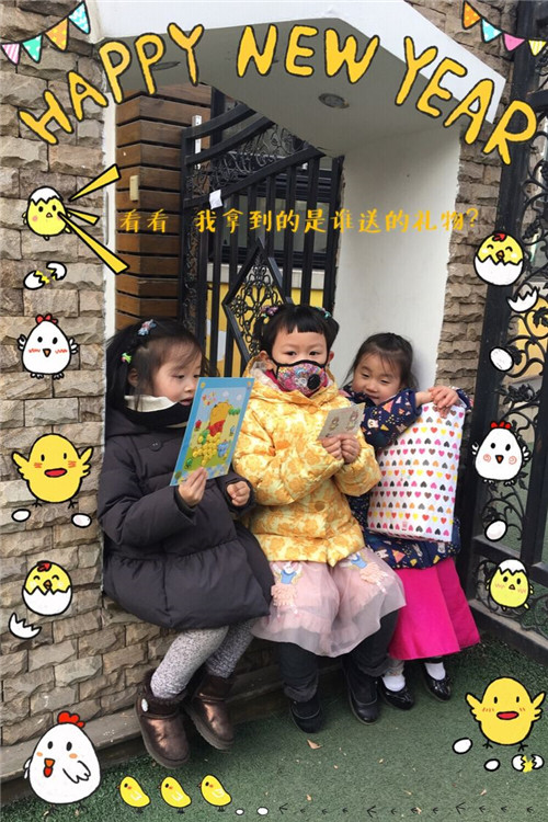 入园时间到了!园长老师和各种形象的人偶,在幼儿园门口迎接小朋友们,小朋友在得到老师们和喜庆的人偶送来祝福的同时,还领取到了一张张神秘的小卡片,这些小卡片可是作为新年自制礼物漂流活动的幸运号码哟!