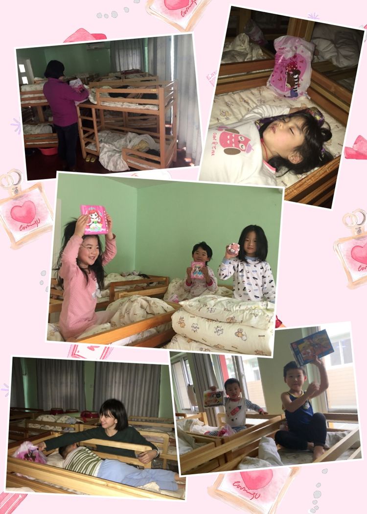 下午,当孩子们从温暖的被窝里爬出来,轻轻揉着惺忪的睡眼,突然,他们发现小枕头旁边有了一个个的礼物盒。他们两眼放光、欢呼雀跃起来,整个睡眠室都沸腾起来!原来,他们想要的礼物居然真的来到了身边,没有比这更让他们开心、高兴的了!被爱、被惊喜包围着的孩子们,幸福的笑着,快乐的成长着…