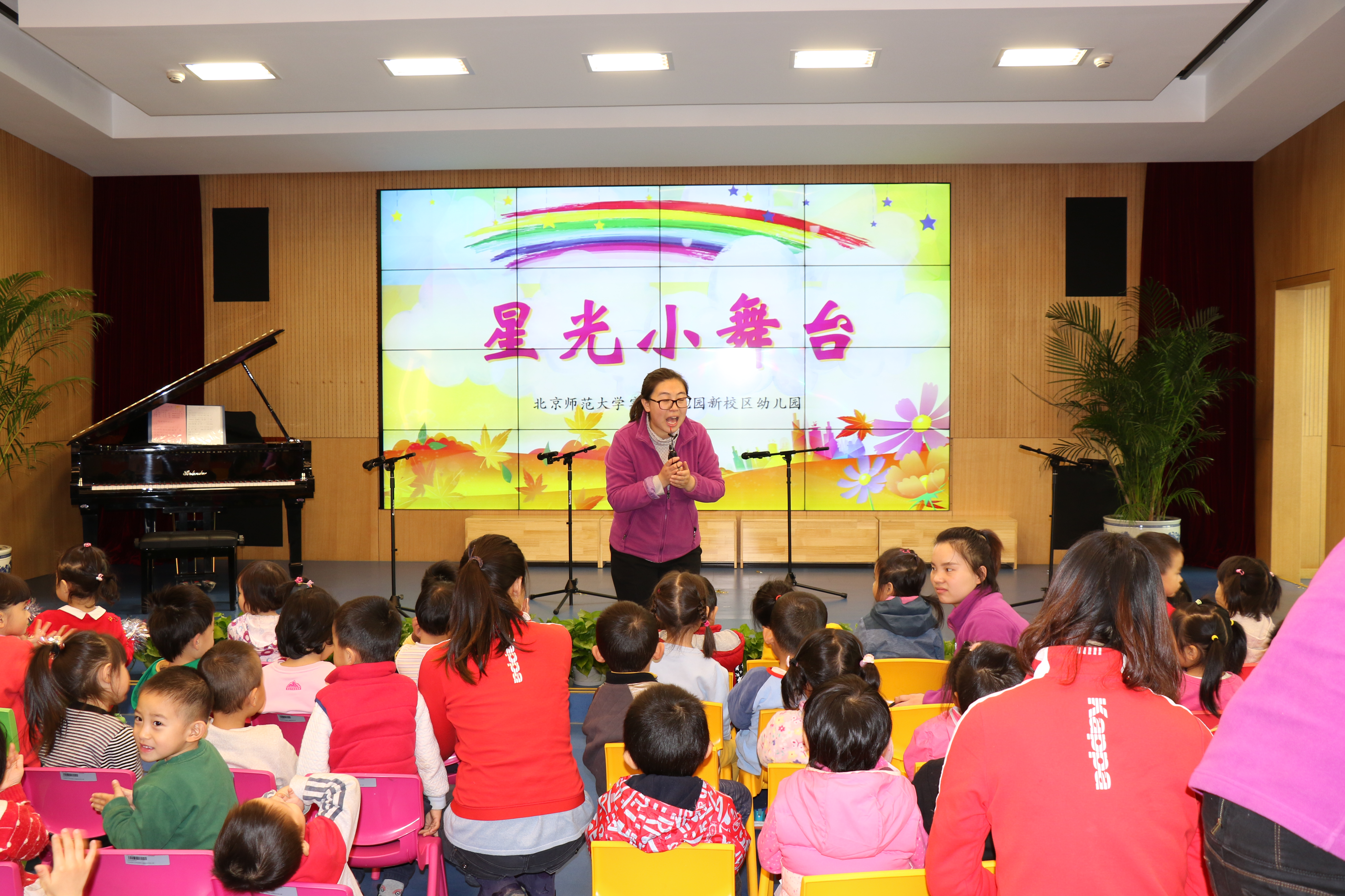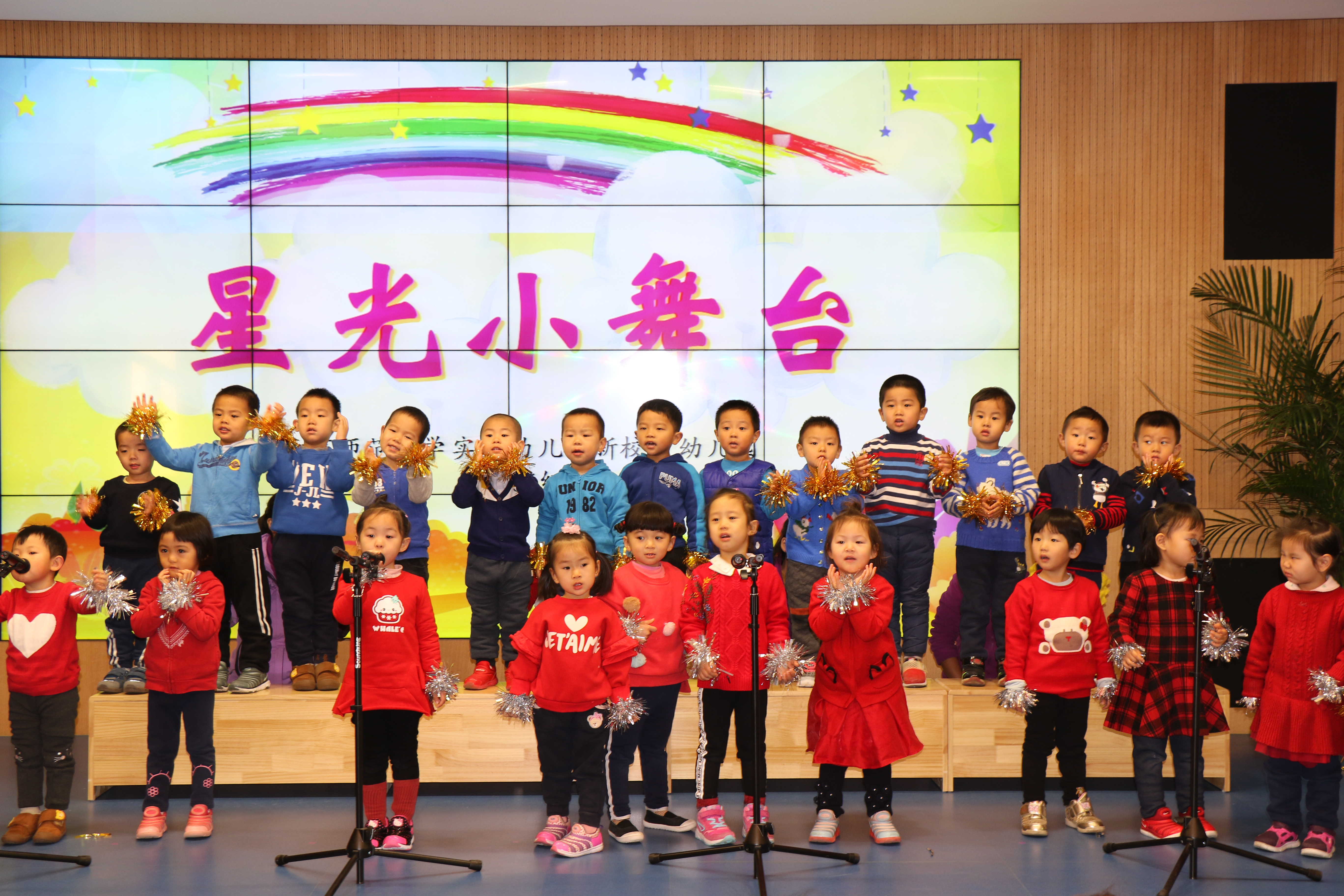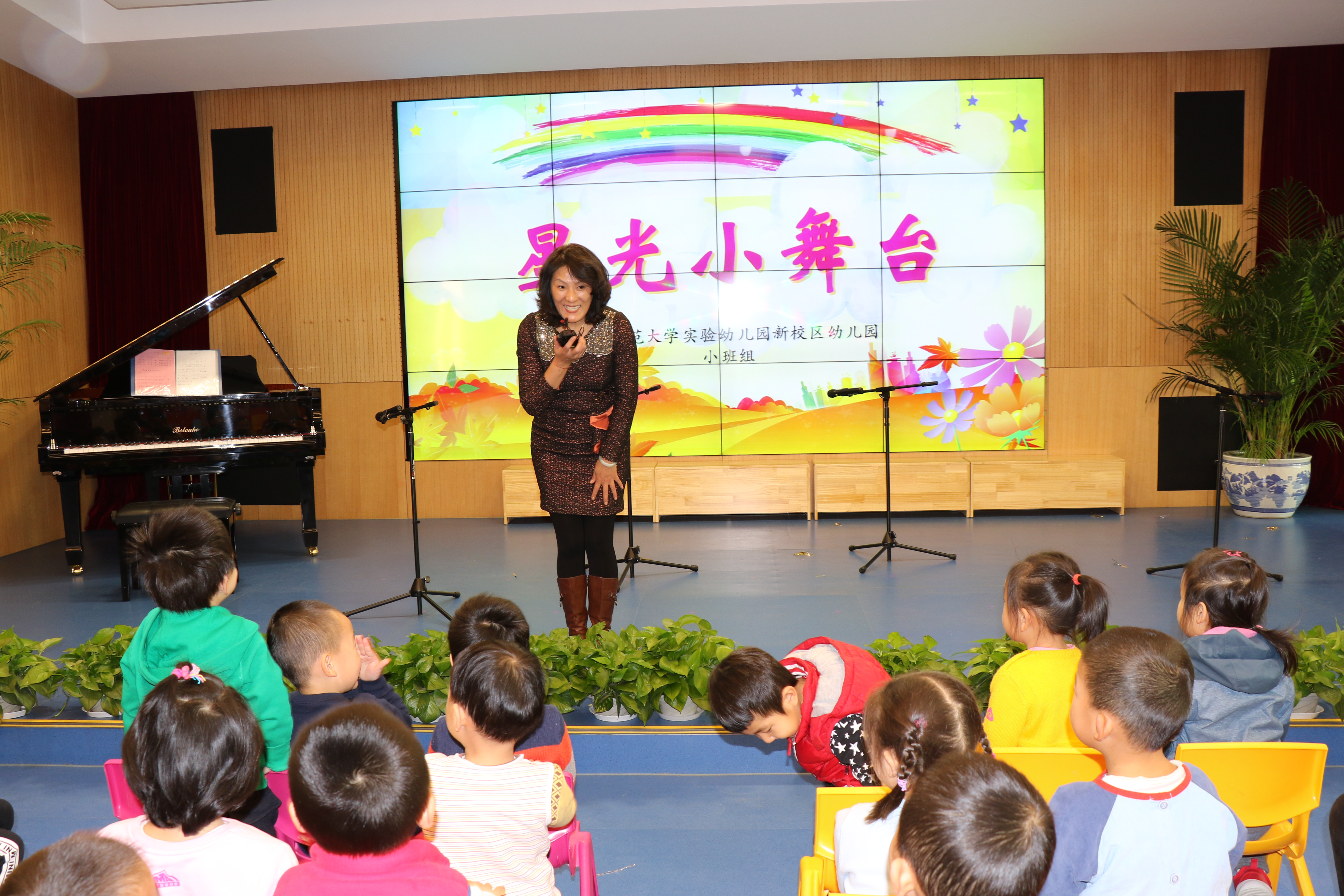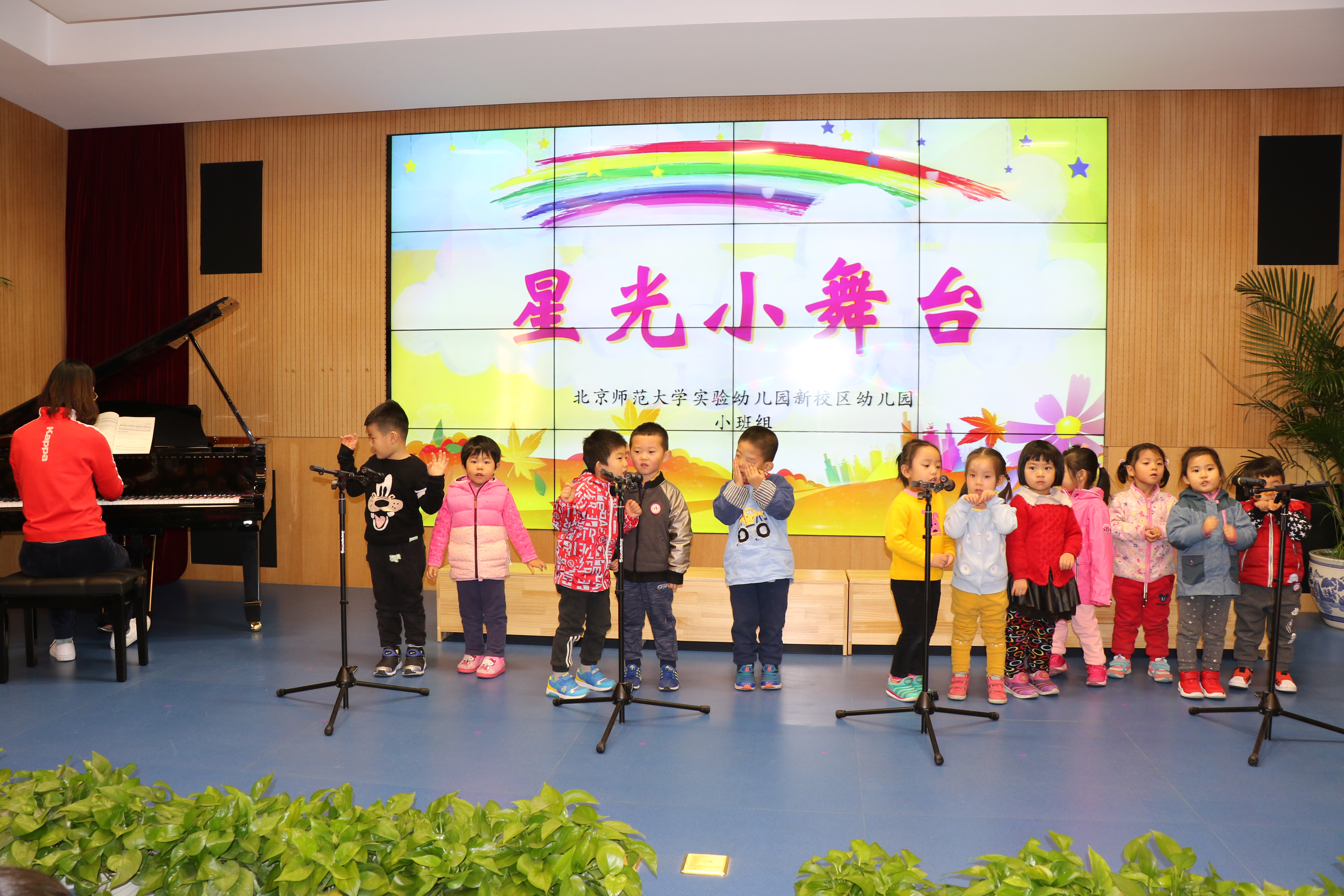 2017年12月1日,北师大实验幼儿园新校区园举行了小班年级组“星光小舞台”演出活动。虽然小班幼儿入园仅有不足两个月的时间,然而在教师们的辛勤培育下,小朋友们都会唱了很多好听的歌曲。活动中,小演员们像小小歌唱家一样自信、大方地展现着自己,向观众们传递着稚嫩又美妙的歌声。《打电话》、《数鸭子》、《扮家家》、《小鸭小鸡》、《小金鱼》、《小星星》、《走路》等十多首歌曲精彩不断。小观众们也一个个认真专注地聆听,并为自己的小伙伴鼓掌加油。此次活动为幼儿提供了展示自我的平台,进一步激发了幼儿对音乐活动的喜爱,提升了幼儿大胆表现的能力。活动最后,孙园长也对老师们的付出给予了肯定,鼓励小朋友们们多唱歌,用好听的声音唱歌,在幼儿园快乐健康地成长!