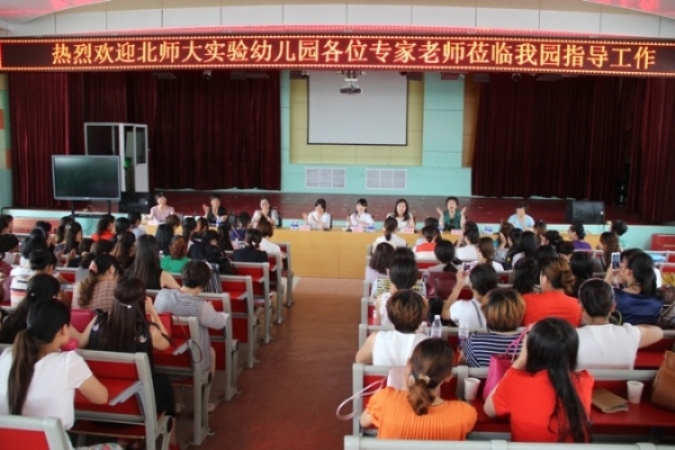 本次活动以讲座培训与实地下园指导为主。讲座第一天上午,保教主任熊庆华简要介绍了我园的各方面情况,并播放了《百年有园》的专题录像片,给在场的教师们深深的震撼。随后,做《在互动式教研活动中促进教师专业成长》的主题报告,她将理论与实际教研案例相结合,生动地展现了我园互动式教研促进师幼协同发展的成果。1500多人的会场座无虚席,所有园长、教师都在认真听讲、记录,参与互动,教育局的杜长娥主任总结时说到:“互动式的教研方式给我们很大的启发,教研一定要以教师为主体,听到每个老师的声音是我们追求的目标!”