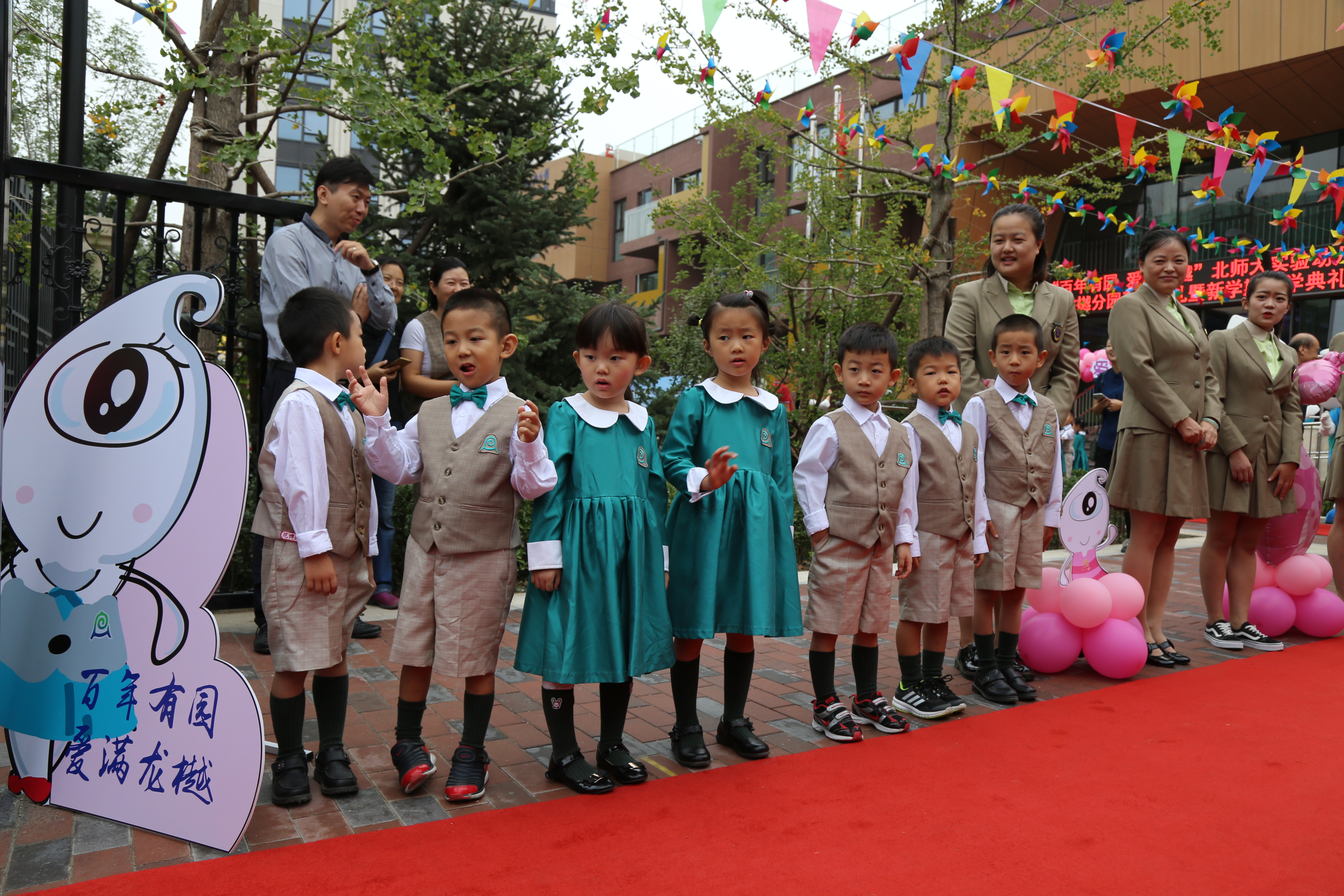 2017年9月25日上午,365bet官网888龙樾分园隆重举行了开园典礼暨新学期开学典礼。出席本次典礼的嘉宾有:北京师范大学副校长张凯,海淀区教委副主任张彦祥,海淀区教委副调研员杨宝玲,海淀区教委学前科科长周轶群,东升镇副镇长殷秀颀,城建兴华地产有限公司董事长武涛,城建兴华地产有限公司总经理王文胜,北师大实验小学校长吴建民,十一学校龙樾实验中学校长王海霞,北师大实验幼儿园总园长黄珊,北京师范大学、东升镇政府、西三旗派出所、西三旗街道、文龙社区的嘉宾代表、北师大实验幼儿园4所分园的执行园长以及龙樾分园的家长代表。