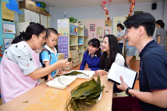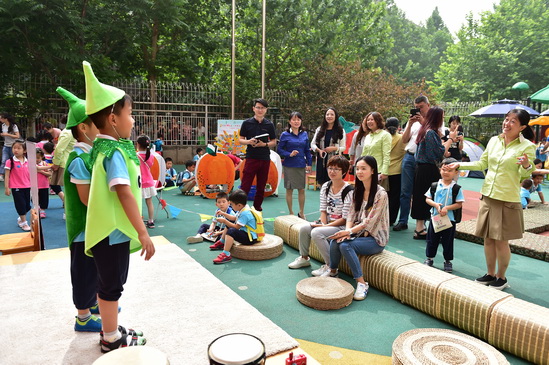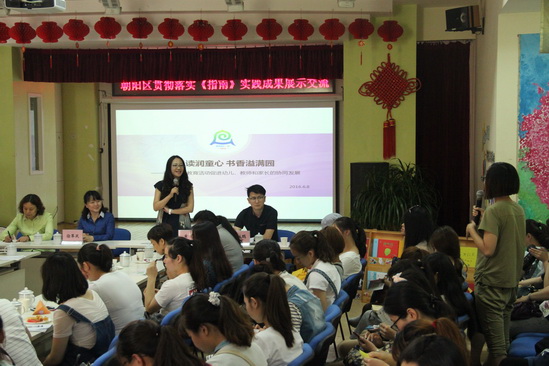 为了发挥朝阳区《指南》试点园的带头示范作用,分享我园在贯彻落实《指南》过程中的成果, 201668日北师大望京大西洋新城幼儿园面向朝阳区全区幼儿园进行了开放展示活动。朝阳区学前教研室黄培老师和丁振鹏老师主持和参与了此次活动。在朝阳区学前教研室领导的高度重视和深入指导下,本次展示活动我园以“小鬼当家——快乐阅读日”为切入点,向来自全区200多位幼儿园的园长、主任和骨干教师展示了我园在“开放式教育活动促进幼儿、教师和家长协同发展”上的成果。通过在“小鬼当家”活动现场的亲身体验,聆听望京分园徐翠凤园长的精彩报告,参观老师们对北师大望京分园贯彻落实《指南》精神的成果给与了充分的肯定。孩子们在活动中的自主、有序和快乐感染了在场的每一位老师,让老师们都感慨到“假如自己是孩子在这样的活动中一定也是快乐的、幸福的、有收获的”。在报告后的研讨中,参观老师为望京分园教师们将绘本与游戏结合让幼儿在自然的环境中获得语言的主动发展和家长志愿者的积极参与促进家园共育给予了高度的评价。朝阳区学前教研室黄培老师在总结发言中也为我园贯彻落实《指南》的成果给予了认可:“真研究带动真发展,真生活创造真教育,只有真正的关注到孩子的生活,用孩子的生活完成孩子的发展,才能让教育像呼吸一样自然。而在这些方面北师大望京分园做到了。”悦读润童心,书香溢满园,在落实《指南》探索早期阅读的实践中,我们将与幼儿一路同行!