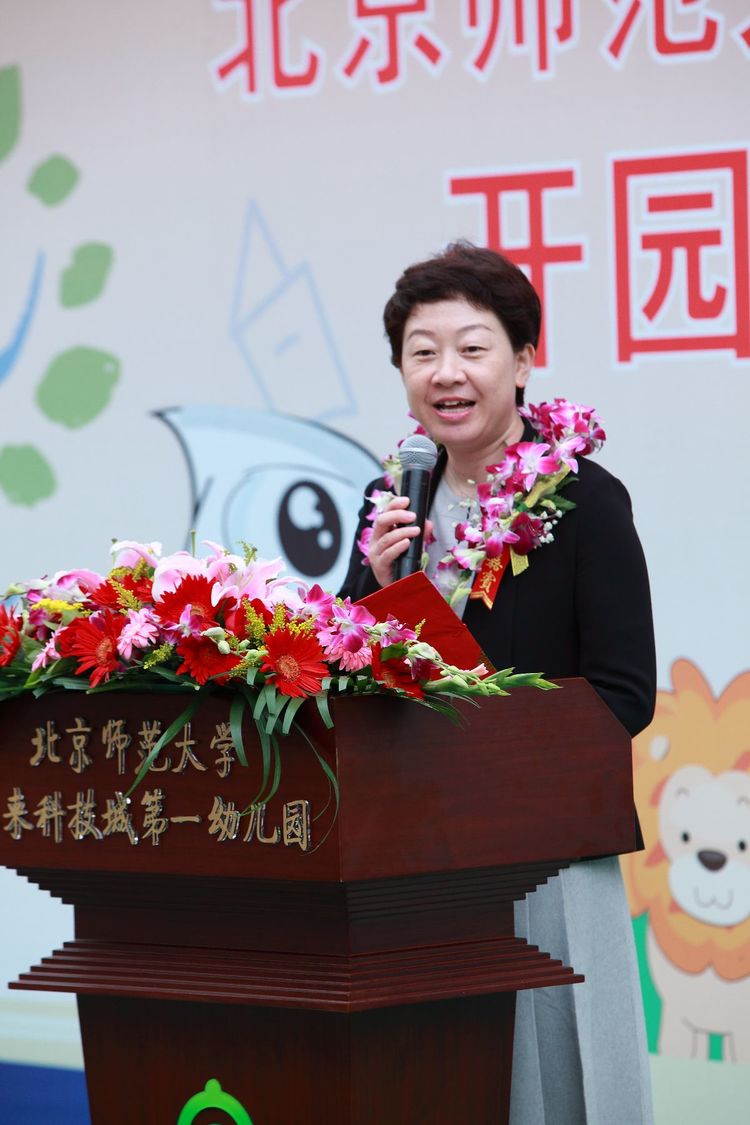 北京师范大学张凯副校长发表了热情洋溢的讲话,他代表北京师范大学祝贺北京师范大学未来科技城第一幼儿园开园,亲切问候老师和小朋友们,并祝福幼儿园越办越好!