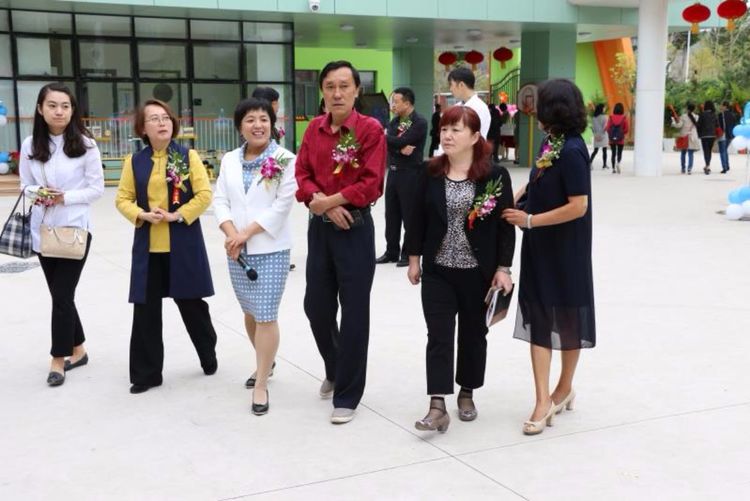 领导和嘉宾为幼儿园开园剪彩。