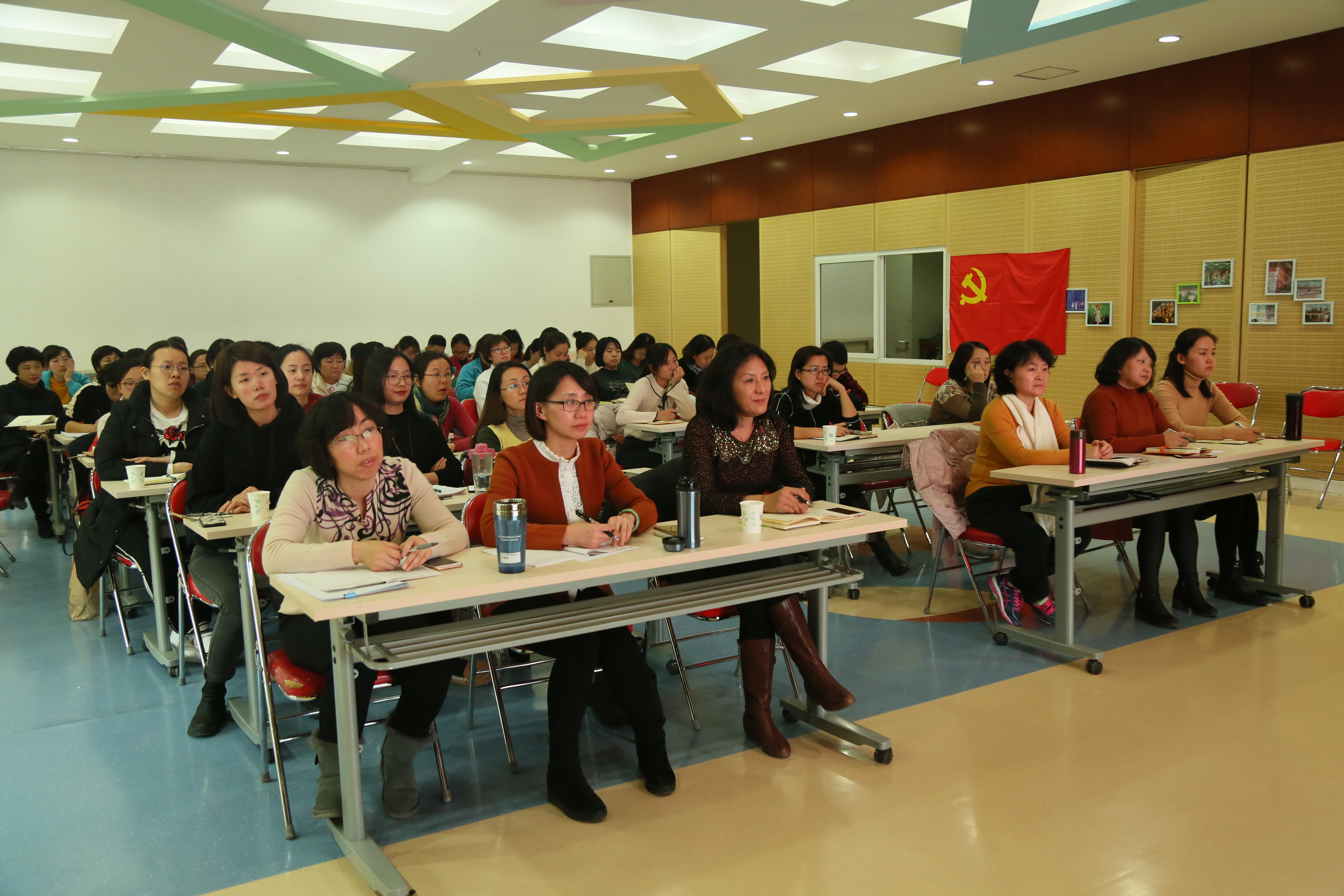 2017年12月1日,北师大实验幼儿园党支部全体党员在校本部园多功能厅聆听了黄珊书记关于“新时代 新发展 新篇章——深入学习党的十九大报告”的专题党课。