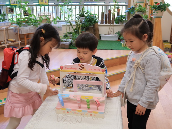 2017年4月12日,望京分园开展了以“科学探索”为主题的小鬼当家活动。在学前领域我们常把孩子比作天生的科学家,不是因为他们有多少渊博的科学知识,而是他们对事物与生俱来的好奇心、探究欲可以和专业的科学家媲美。一个小风车、一个不倒翁、一只万花筒、一架纸电话……这些常见的童年小玩具能让孩子们乐此不疲地吹啊吹、按啊按、看啊看、听啊听,摆弄一上午。更何况还是自己亲手制作的!还有牛奶、小苏打、白醋……这些生活中常见的材料,放在一起竟会发生神奇的变化!