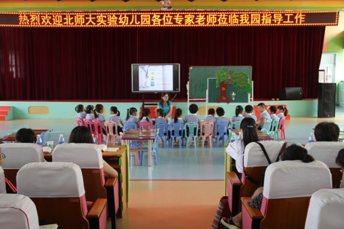 本次活动以讲座培训与实地下园指导为主。讲座第一天上午,保教主任熊庆华简要介绍了我园的各方面情况,并播放了《百年有园》的专题录像片,给在场的教师们深深的震撼。随后,做《在互动式教研活动中促进教师专业成长》的主题报告,她将理论与实际教研案例相结合,生动地展现了我园互动式教研促进师幼协同发展的成果。1500多人的会场座无虚席,所有园长、教师都在认真听讲、记录,参与互动,教育局的杜长娥主任总结时说到:“互动式的教研方式给我们很大的启发,教研一定要以教师为主体,听到每个老师的声音是我们追求的目标!”