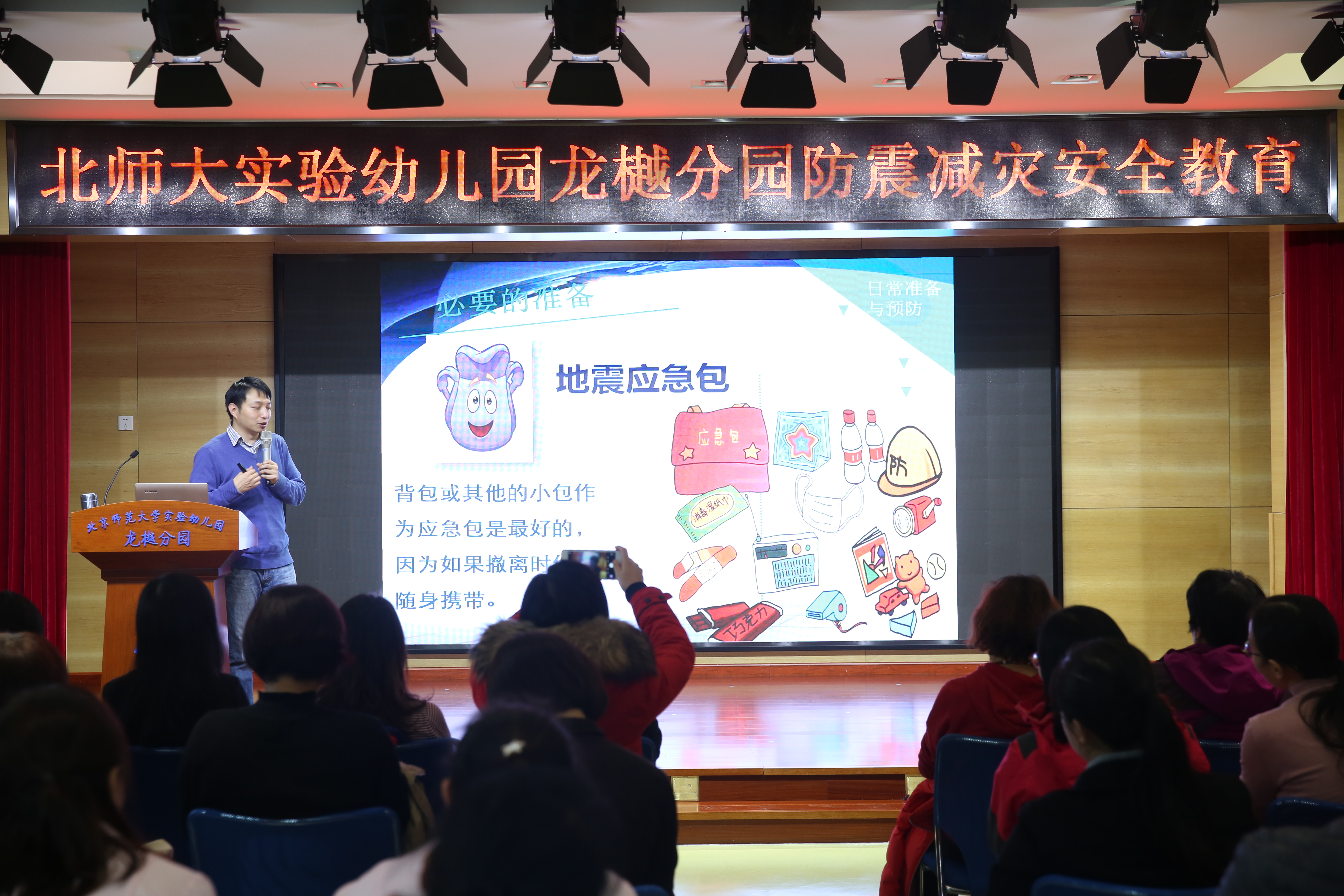 中午,龙樾分园邀请北京市地震减灾防震宣教中心的张宏宇老师开展“防震安全知识”讲座。全体教职工及部分家长参与本次讲座。讲座中,张老师全面讲解了地震带来的危害以及震后逃生自救互救的可操作性方法。