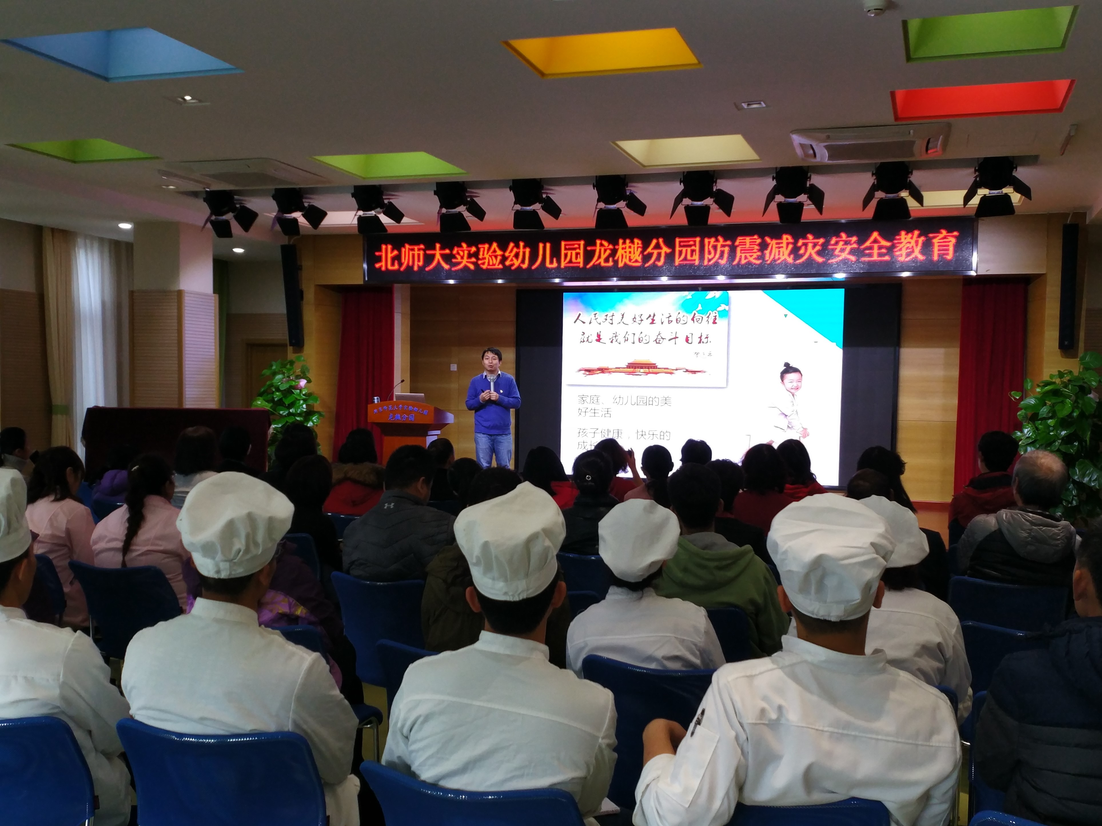 2017年11月17日为北师大实验幼儿园龙樾分园“防震减灾”安全主题教育日。为了使全园教职工、幼儿及家长学习地震逃生应急避险知识,提高紧急自救自护能力,掌握地震来临时最有效的逃生方法,我园开展了“防震减灾安全教育”暨“防震应急疏散演习”活动。
