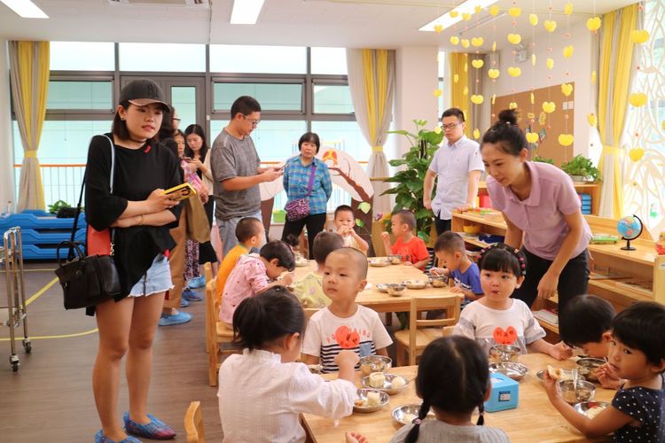 为了减轻小班幼儿入园焦虑,第一天爸爸妈妈也来陪伴。家长们在过程中,初步了解了北师大实验幼儿园自然、有序、自主、自律的教育理念及幼儿的半日生活常规。