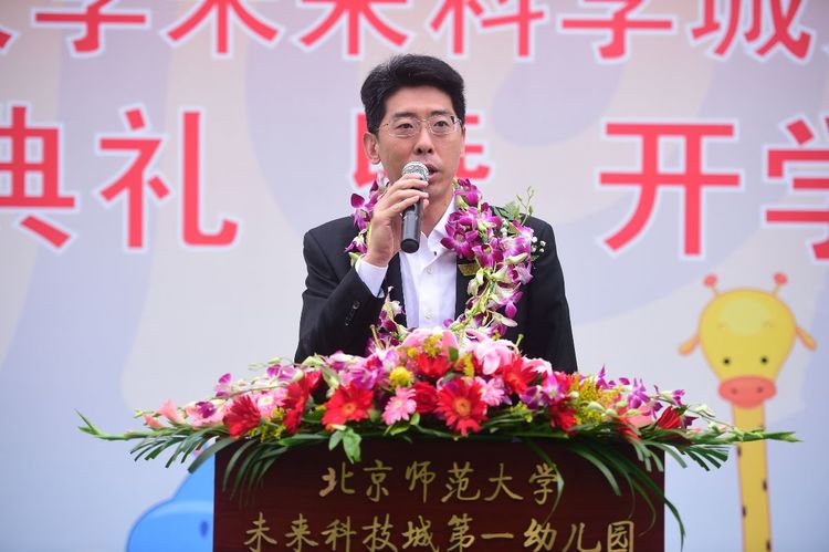 北京师范大学张凯副校长发表了热情洋溢的讲话,他代表北京师范大学祝贺北京师范大学未来科技城第一幼儿园开园,亲切问候老师和小朋友们,并祝福幼儿园越办越好!